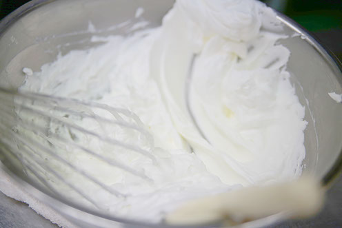 スポンジとフルーツとの相性を考え、数ある中から選んだ生クリーム。濃厚でコクがありミルクそのものを感じる純生クリーム。濃いミルクが口の中でスーッと溶けていくようなそんな味わいで、脂肪分を抑えた物を使用し、なおかつ糖類も抑えた、味わい深いのにあっさりとした生クリーム。生クリームの白さにも特徴です。